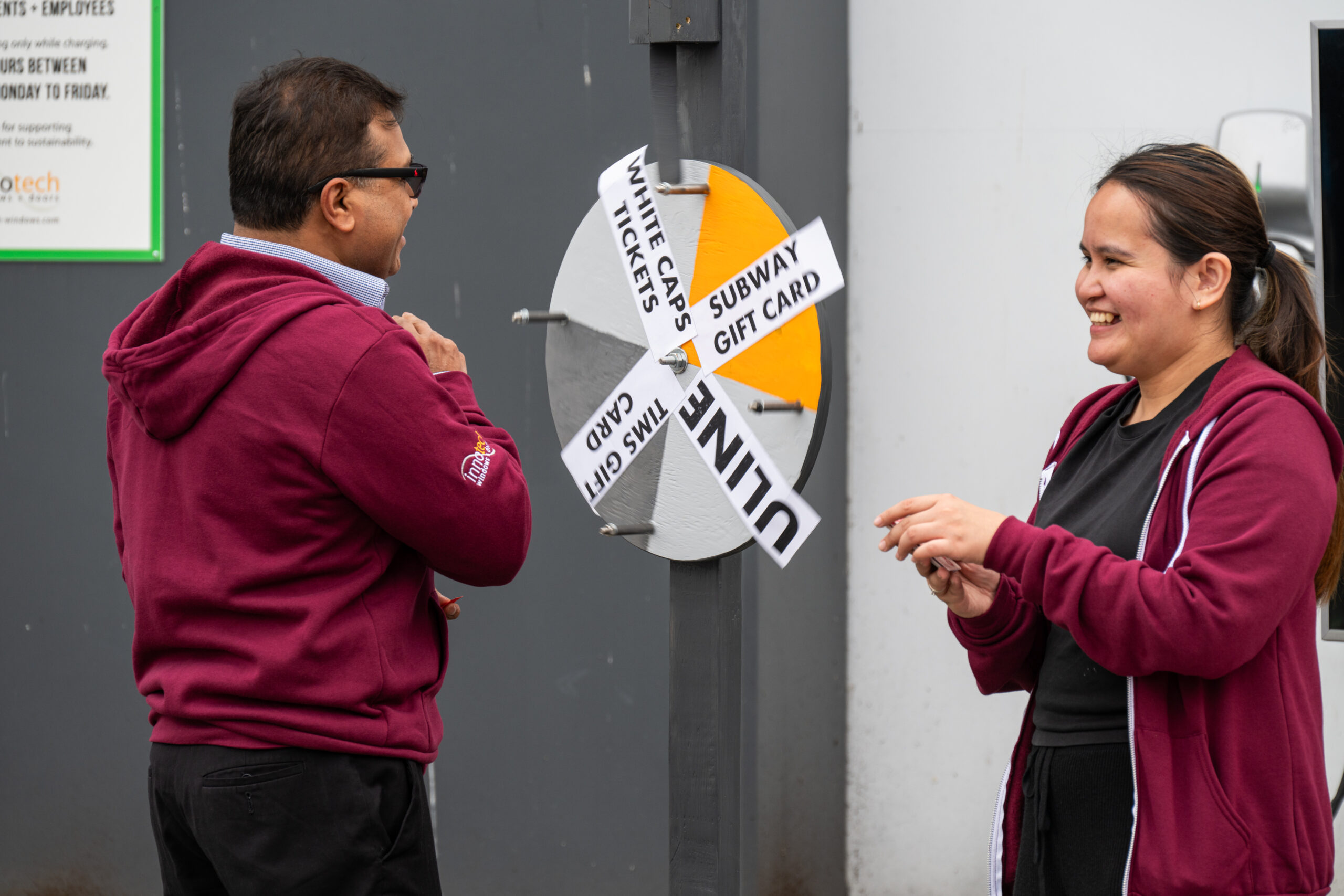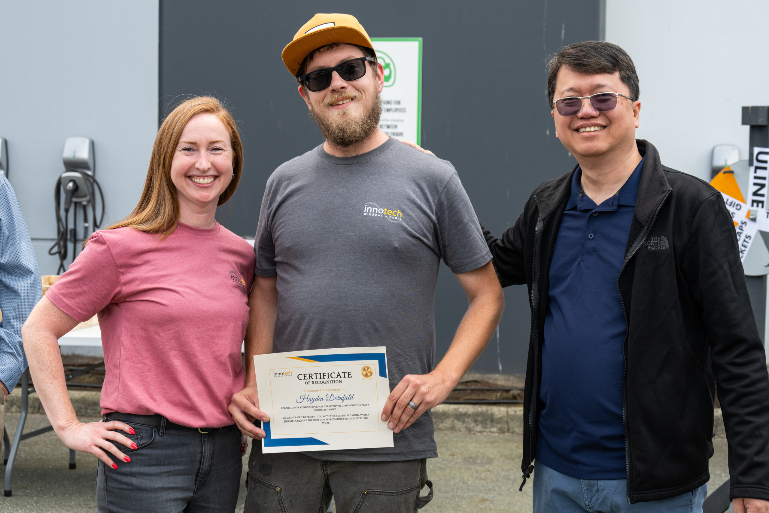 Next, we gifted Hayden, with a prize for winning a t-shirt design competition. It was our first time hosting a competition for the design of a new Innotech t-shirt; our marketing team received many great ideas and Hayden’s was the winner. His concept represented what it means for many of us at Innotech when we say “beautiful living : for generations”.