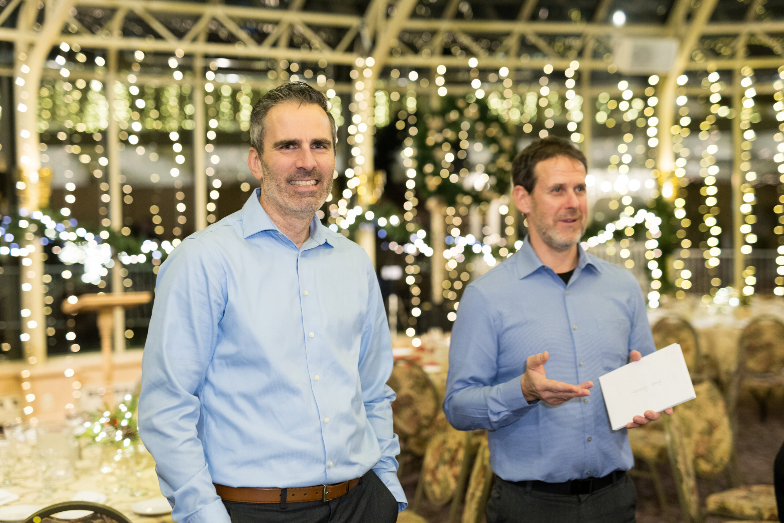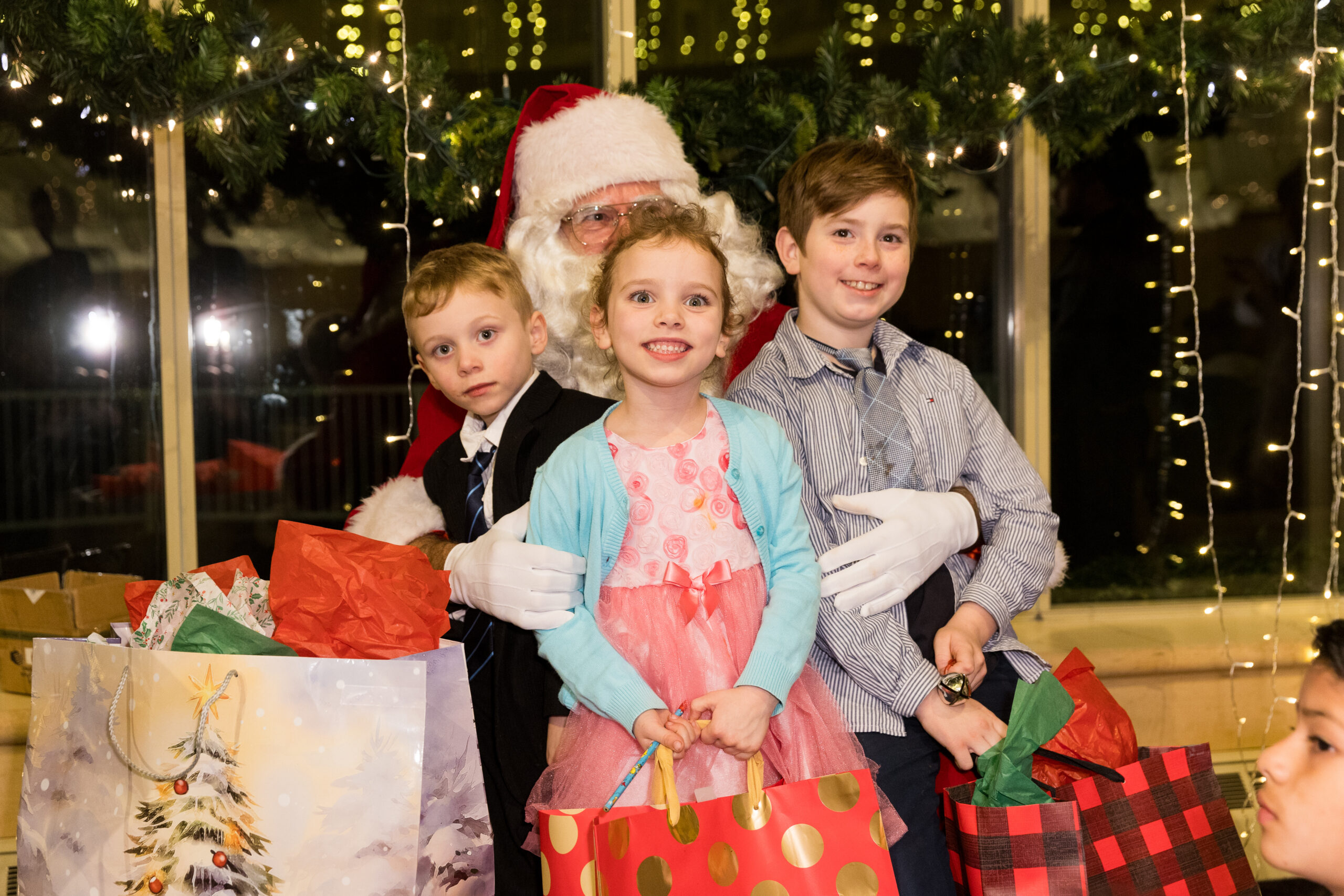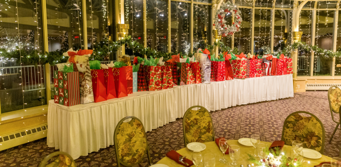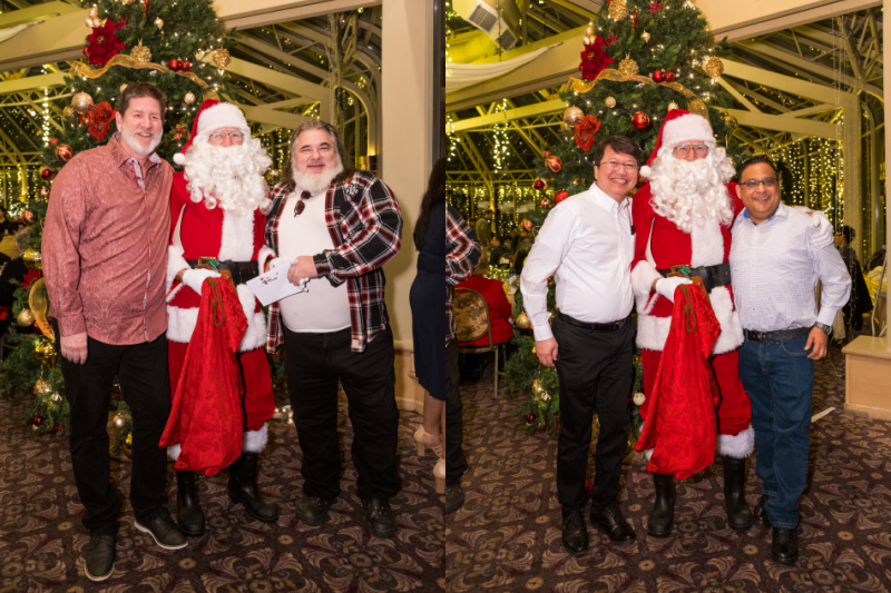 One of our long-time traditions is inviting Santa Claus to our party to give a gift to all kids under the age of 12. He generously joins us every year (thanks Santa!) and it’s always a blast watching all of our children open their special gifts!