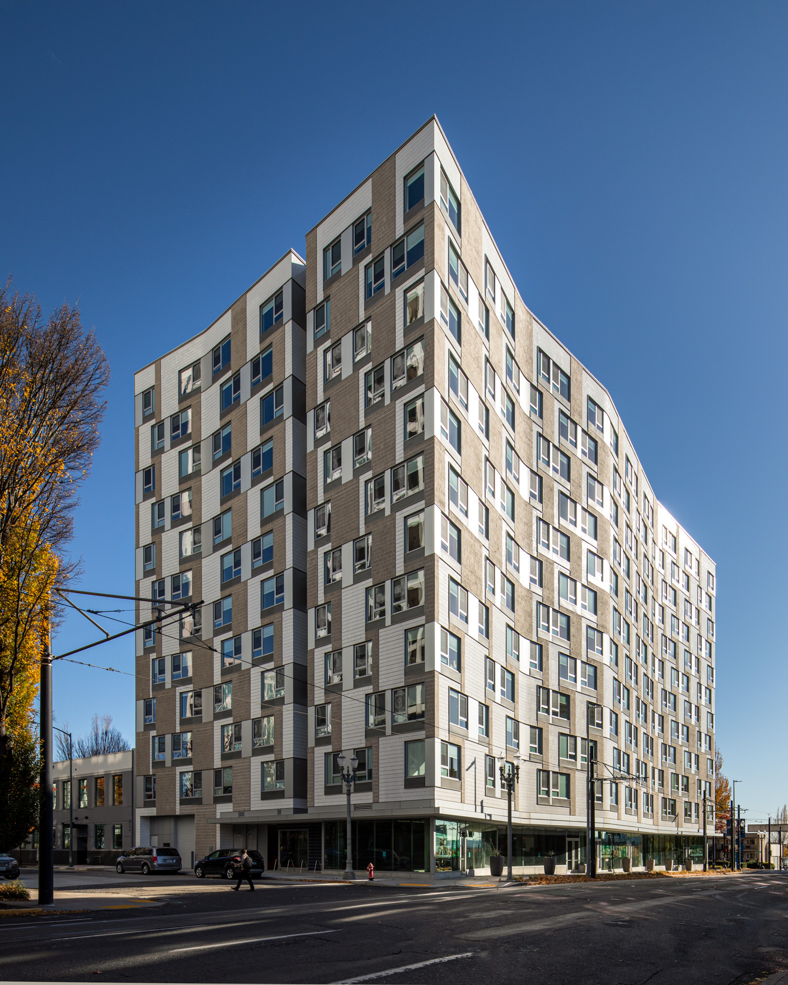 The Louisa Flowers was designed by LEVER Architecture and LRS Architects for Home Forward. Completed in 2019 by O’Neill/Walsh Community Builders (OWCB), it is the City of Portland’s largest affordable housing development built in the last 50 years. The 240 apartments are a mix of studio, one bedroom and two bedroom apartments.