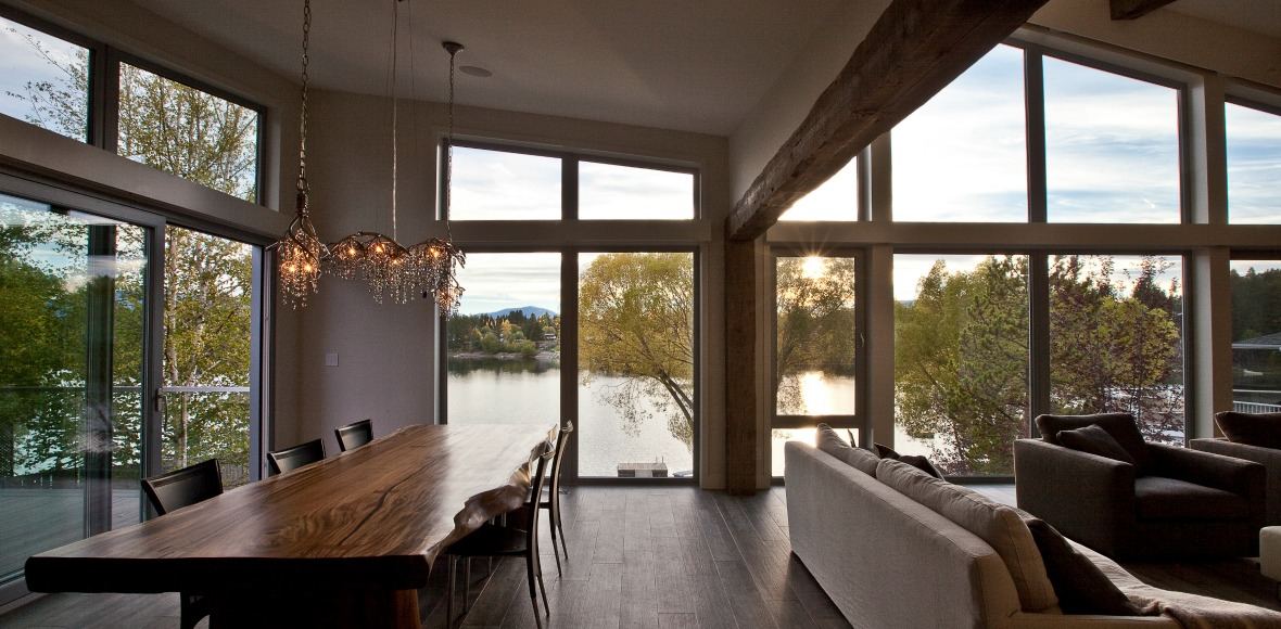 Built by LWE Builders, this Georgie Awards® winning and BUILT GREEN® Platinum certified home is located steps away from the shores of one of the many picturesque lakes in British Columbia’s East Kootenays. Designed to maximize the lot’s triangular shape, the home features a mountain modern design with a stunning butterfly roof-line that connects the home to its surrounding nature.